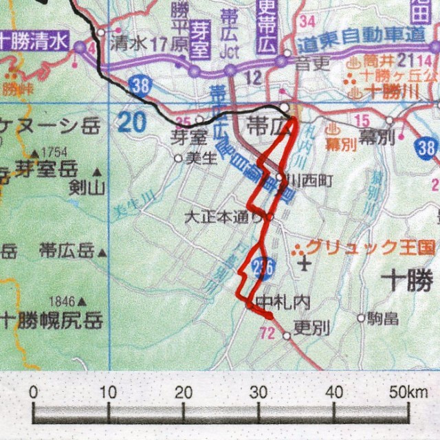 帯広駅前から市内を縦断して南へ、