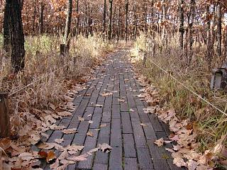 枕木の遊歩道が延々と繋がっていて、