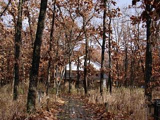 アプローチの白樺並木が美しい。