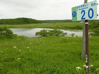 北方原生花園まで後4kmの標識。