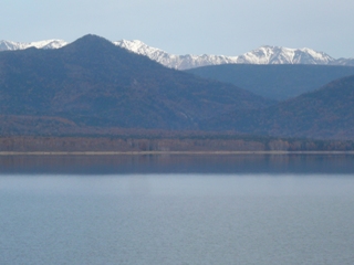 遠くに冠雪した山々が・・・