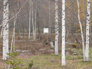 白樺の木立の向こうに駅が!