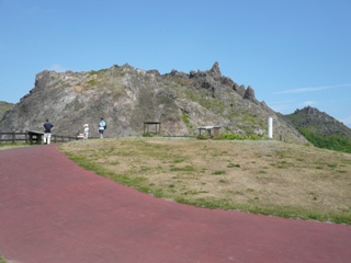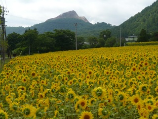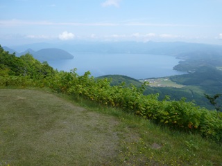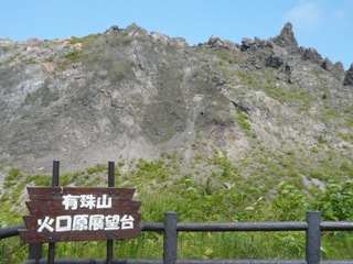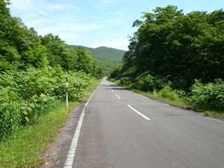 伊達へ抜ける道の東に昭和新山、西に有珠山。