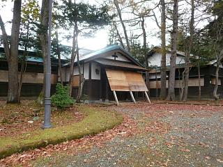 正面玄関は塞がれていた。