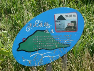 石碑のくぼみは震源地を向いている。