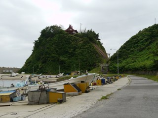 この高台から神威脇漁港が見える。