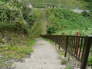 自転車では到底上れない勾配です。