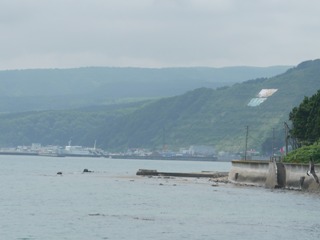 あの向こうが奥尻港だから、
