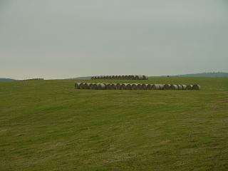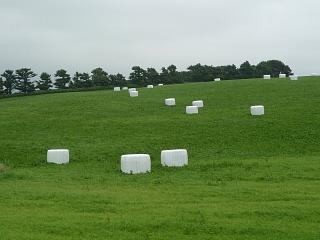 白い牧草のおにぎりの向こうに、
