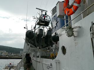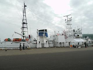 その側に海上保安庁の巡視艇が停泊していて、