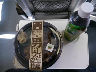 売店のおじさんおすすめの駅弁を買い、車内で食べる。