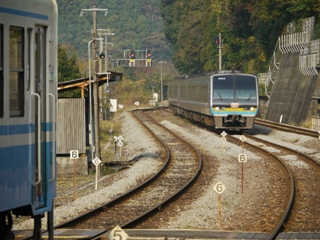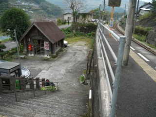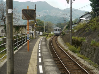 13:58着、祖谷口で下車。各駅停車を見送る。