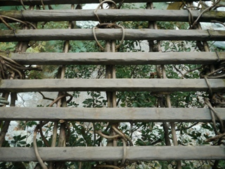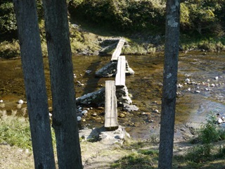それぞれワイヤーで両岸の大木に結び付けられている。