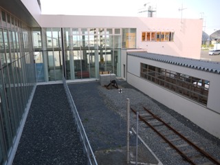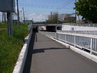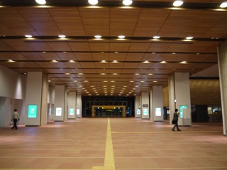 駅前広場と向こう側の忠別川沿いの広場を結ぶコンコースは、