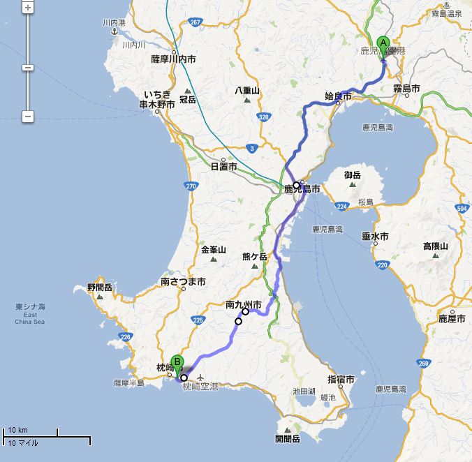 鹿児島空港からバスで知覧へ、そこから枕崎まで走る。