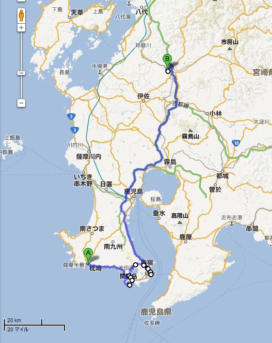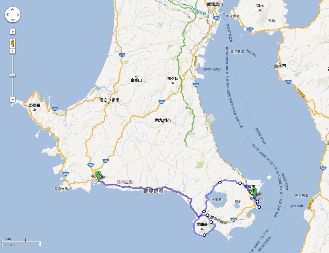 開聞岳一周の後指宿まで走り、JRで人吉へ。