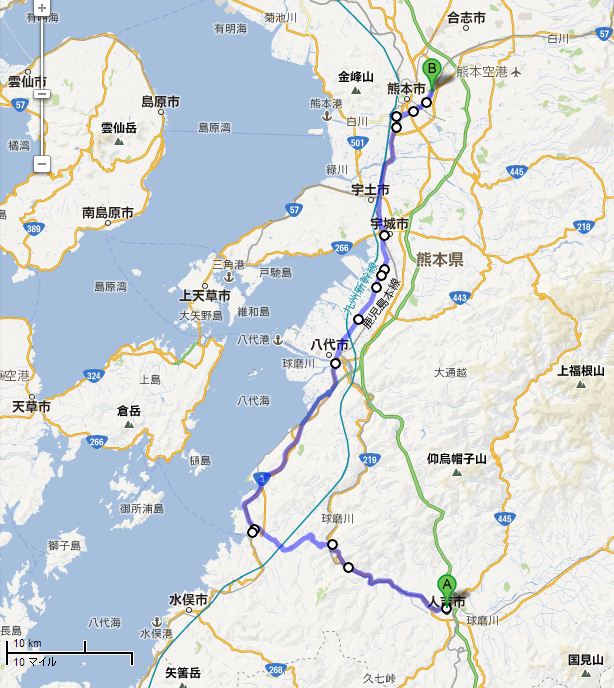 時間がかかりすぎて熊本の到着時間に間に合わない。