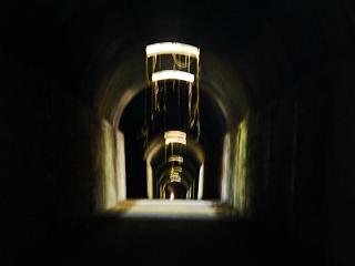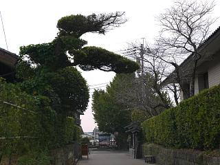 立派なお屋敷の門の向こうにアイストップの石塀がある。