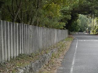 上の方が反り返った土塀