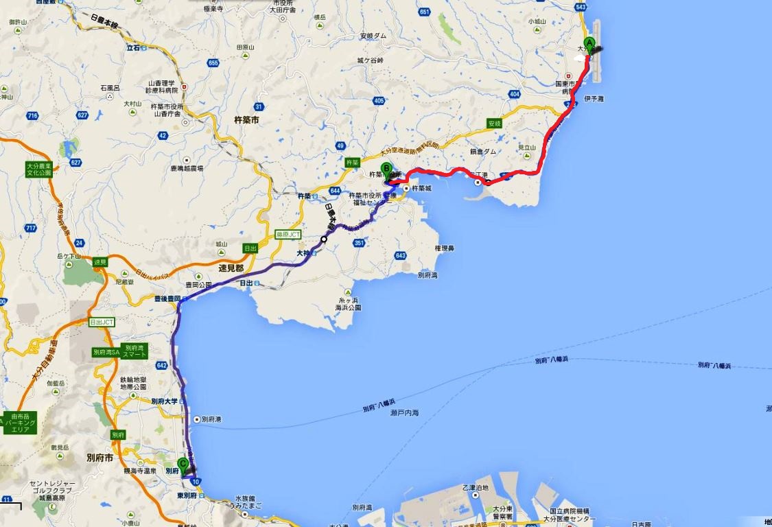 B:杵築まで走り、