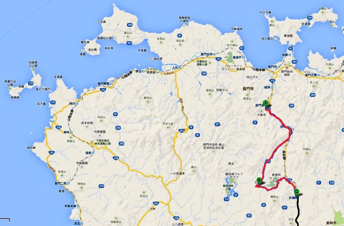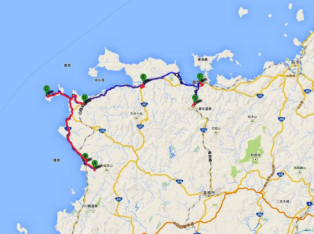 角島灯台、油谷、長門市を経て、長門湯本温泉泊