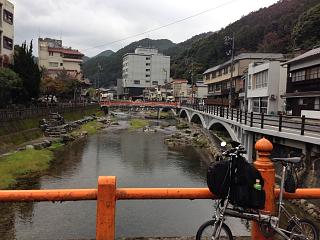 川沿いに温泉宿が建ち並ぶ・・・