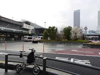 駅前広場の手前でエレベーターに乗り