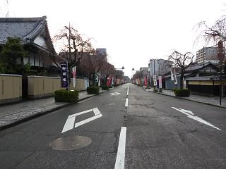 直交する幅の広い道路の東突当りに