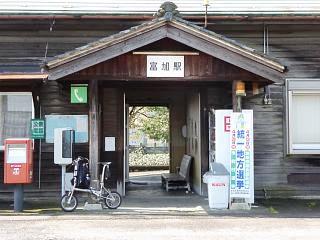 富加駅で上下電車がすれ違い