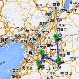 A:菖蒲池〜B:橿原神宮前〜C:古市〜D:河内長野