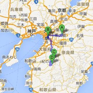 A:菖蒲池〜B:難波〜C:極楽橋〜D:高野山