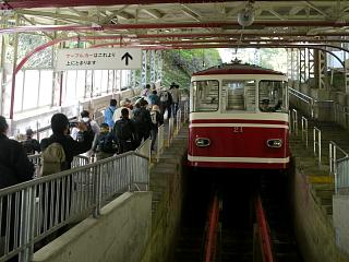 最後は急斜面をケーブルカーで山頂駅へ」、