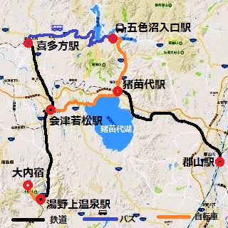 JRとバスを乗り継ぎ「五色沼」へ〜「猪苗代」駅まで自転車
