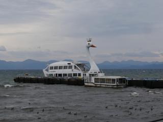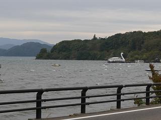ようやく湖岸に出て「遊覧船」が見えた!