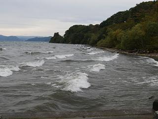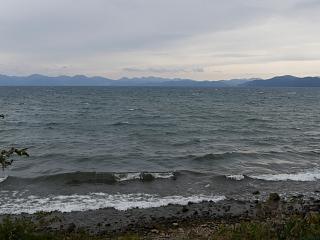 単調な海岸線げ囲まれた湖で、