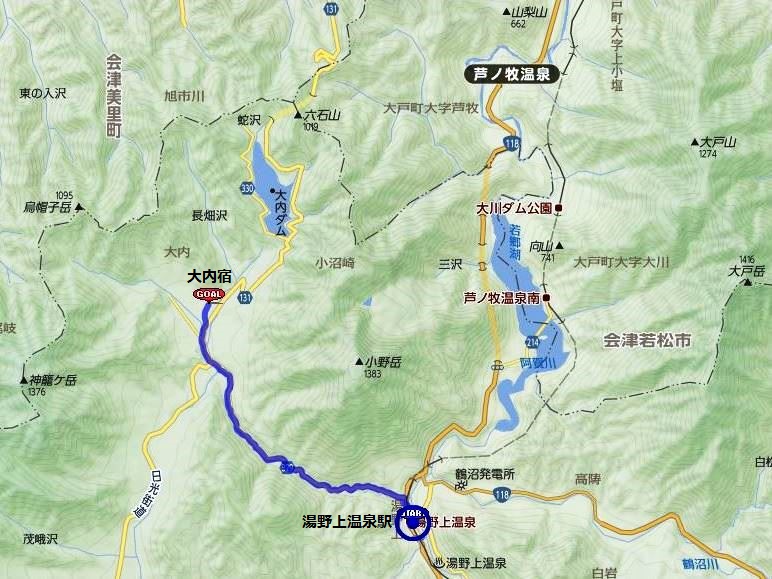 「大内宿」までは緩やかな上りの約6q