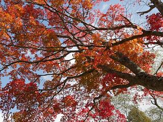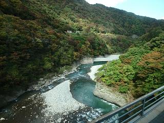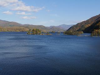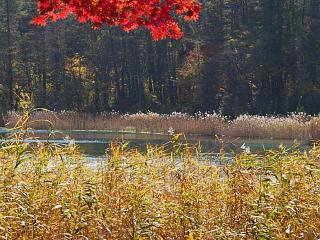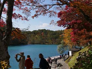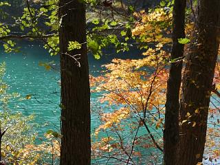 水の蒼と紅葉の対比が美しい