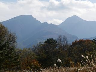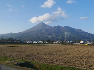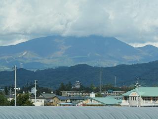 磐梯山の上の方に雲がかかっている