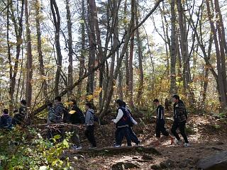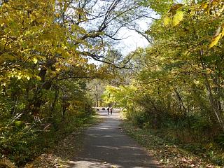 桧原湖畔の散策路に入り