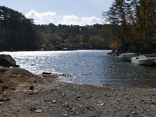 バス停の近くの湖岸を
