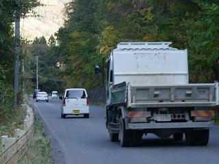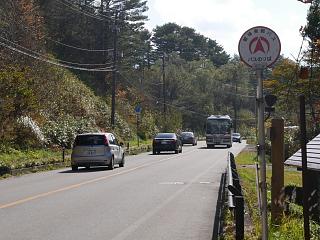 時々大型の観光バスが行き交う