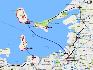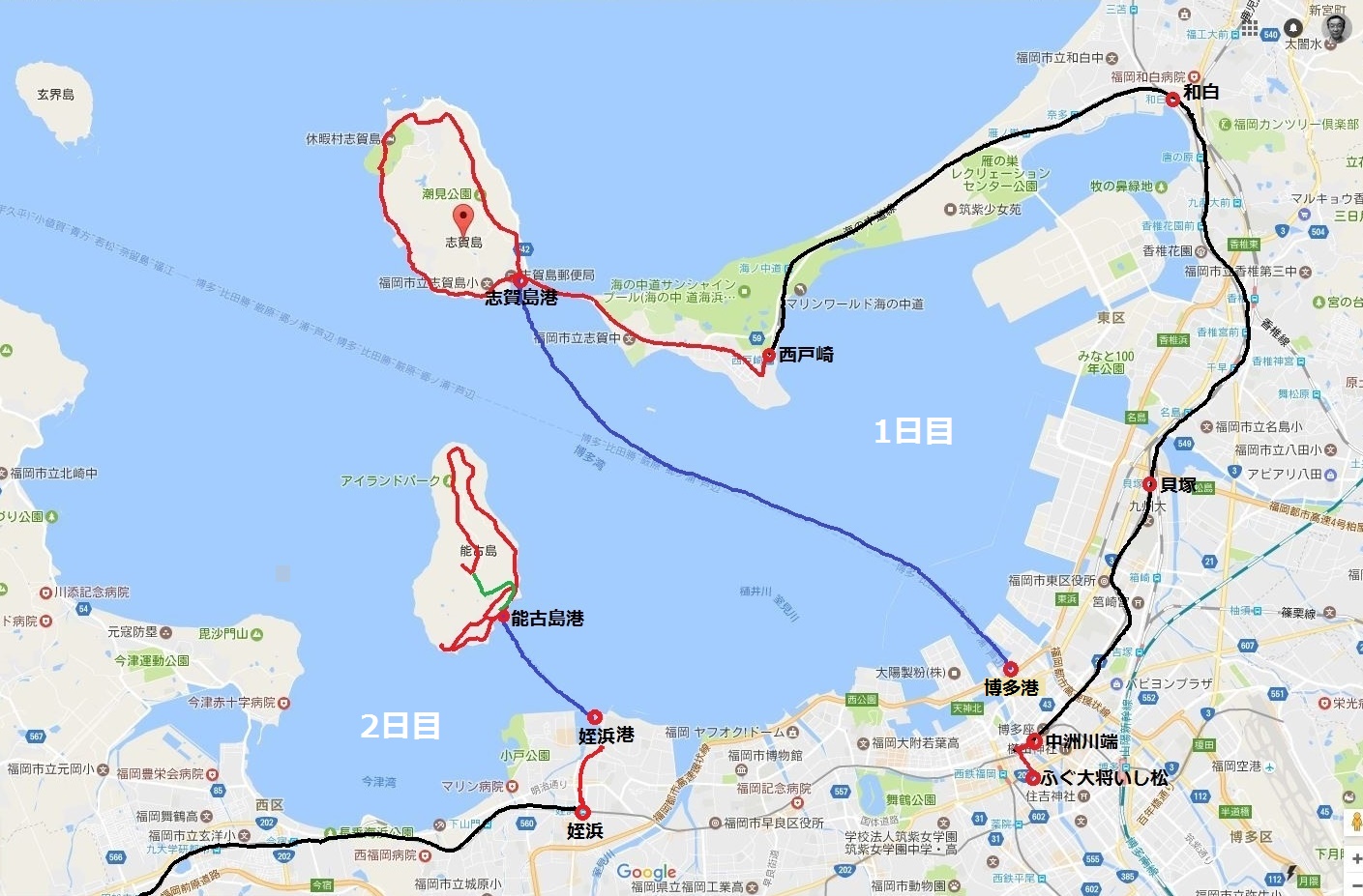 2日目は福岡港近くのホテルから姪浜港まで走り、