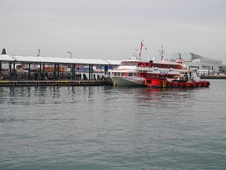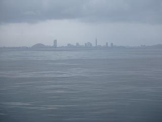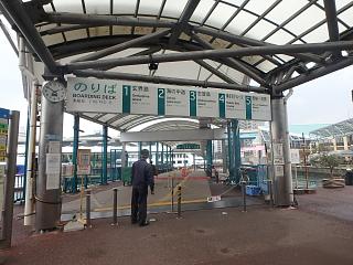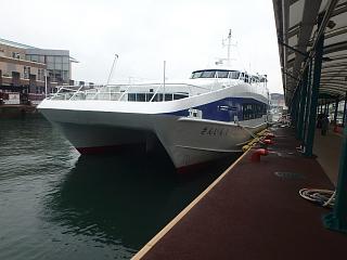 ホテルで荷物を預け、雨天モードの装備で博多港へ