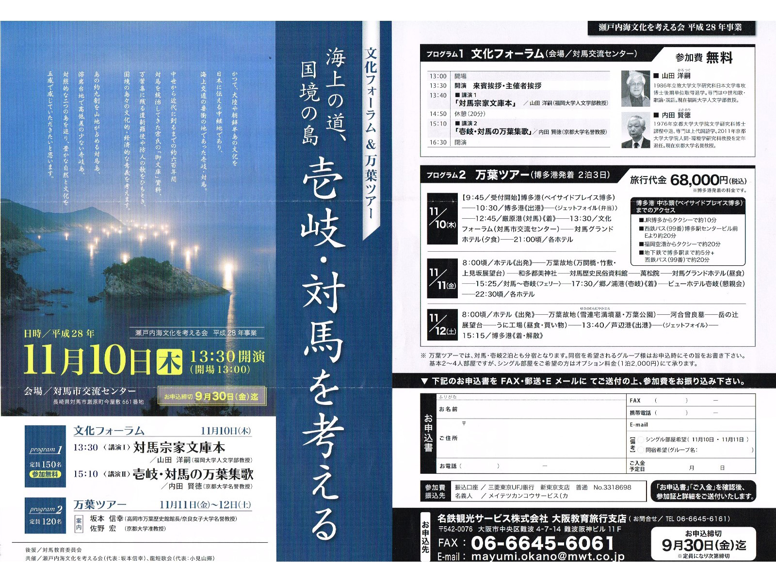 船で「対馬」へ渡り、万葉「文化フォーラム」