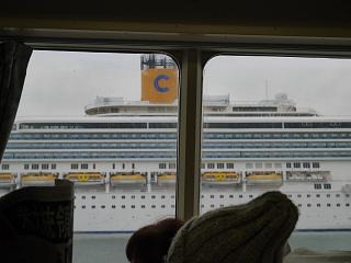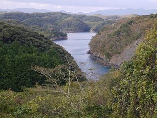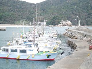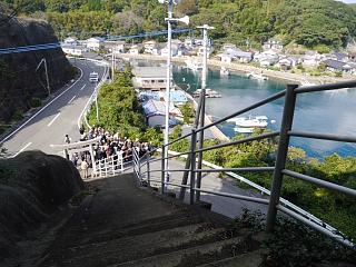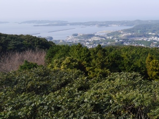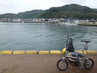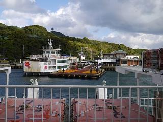 昨夕フェリーで着いた「郷ノ浦港」が見える