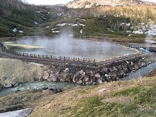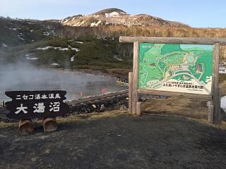 温泉の建物の横にある「大湯沼」からは