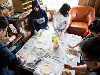 「みんなの家」の中ではみんなでピザの準備です。