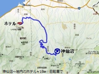 久保田君の車で峠の「神仙沼」まで送ってもらい、