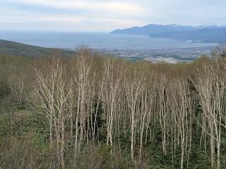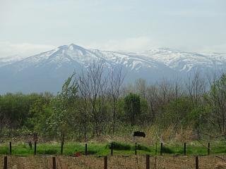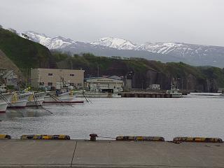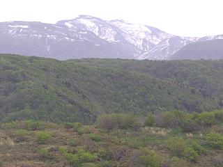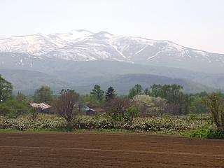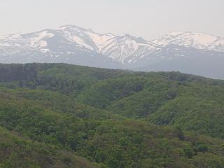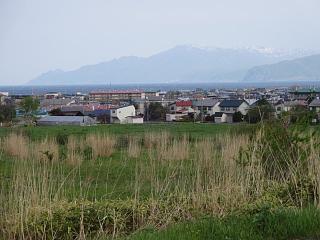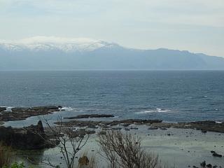 内陸部には冠雪した山並み