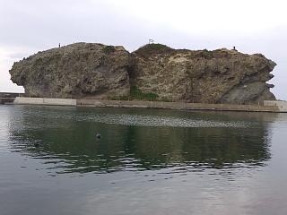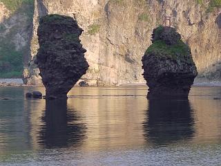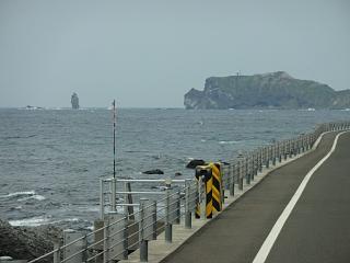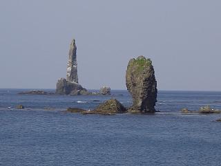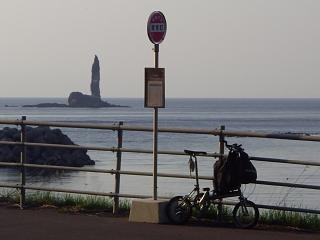 「ろうそく岩」を眺めながらバスを待つことにします。